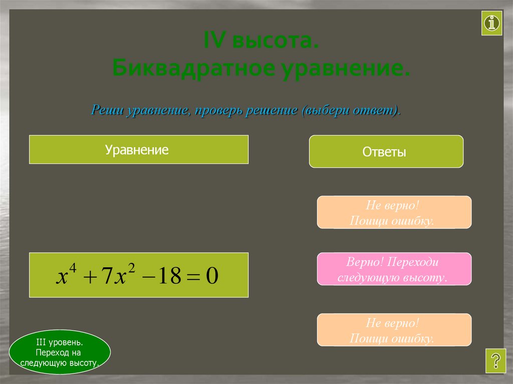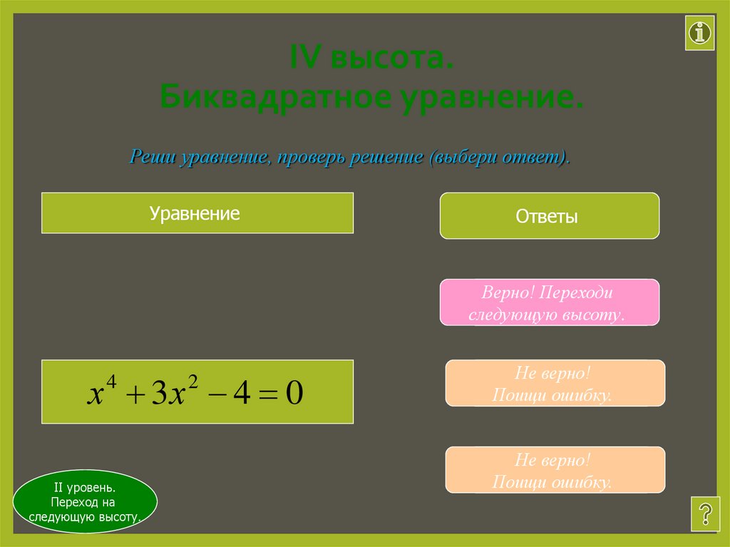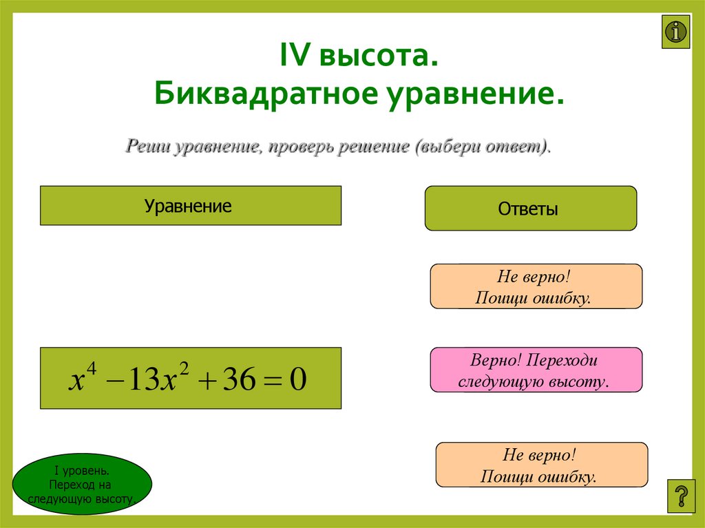 IV высота. Биквадратное уравнение.
