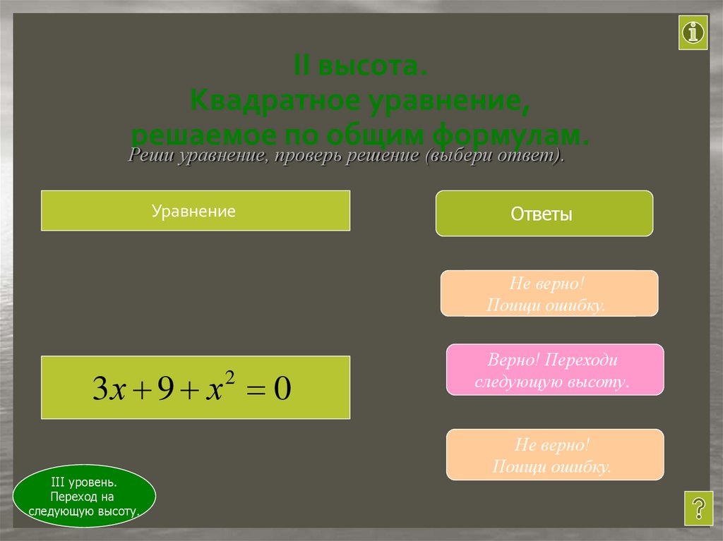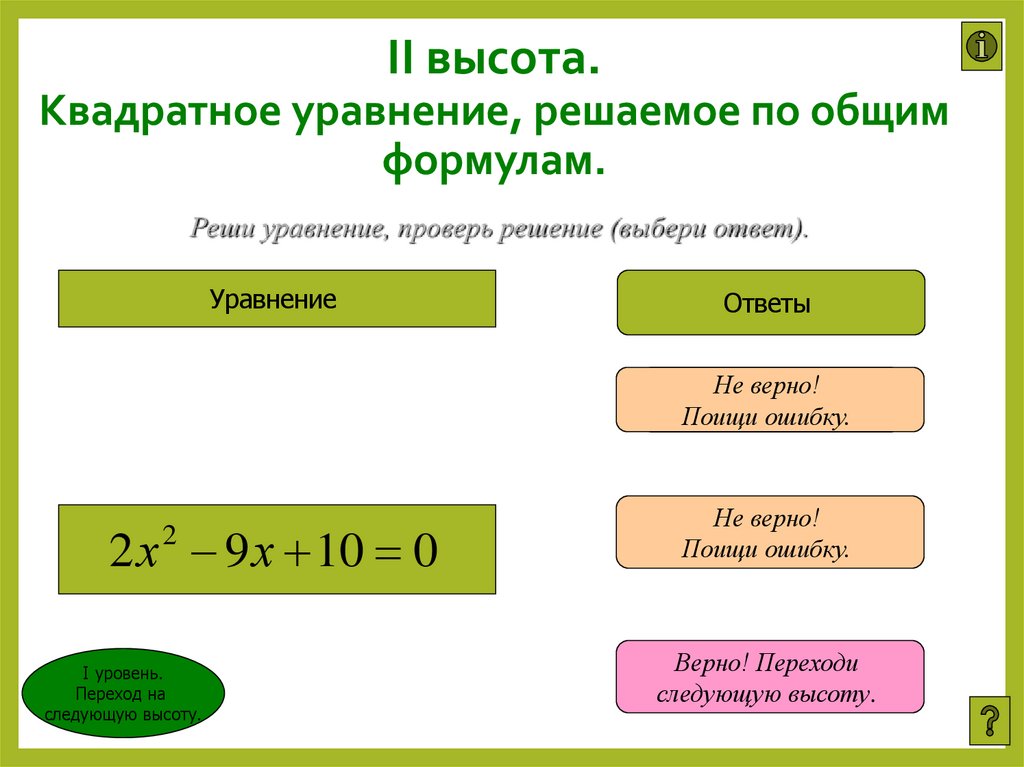 II высота. Квадратное уравнение,