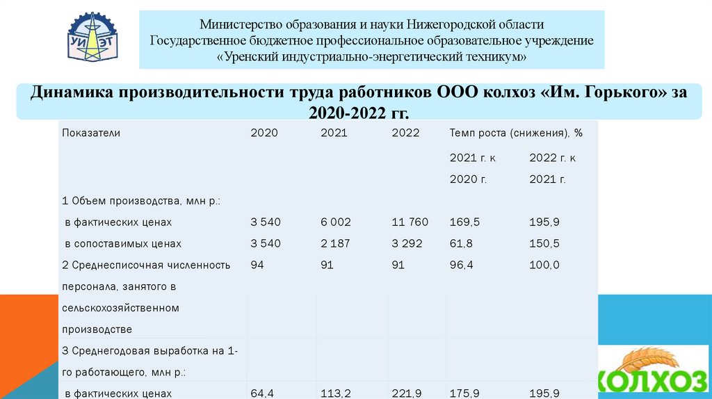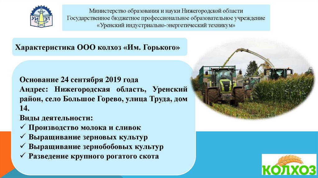 изучение производственных и хозяйственных особенностей ООО "Им. Горького";