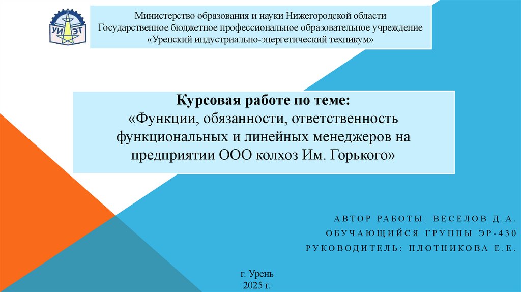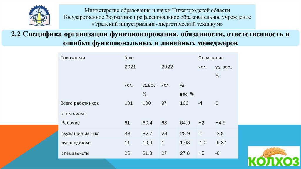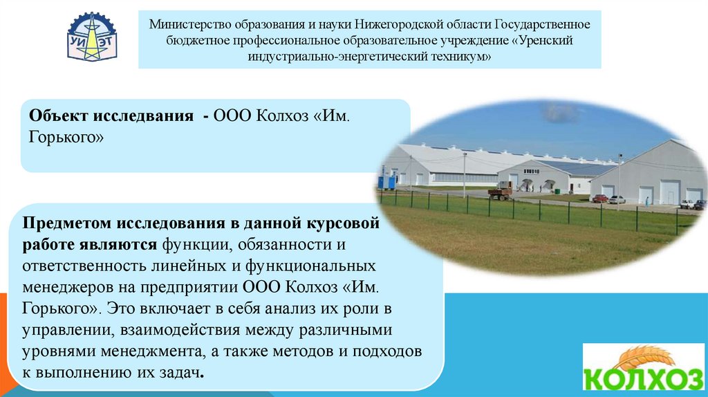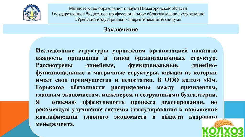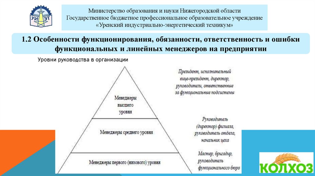 Функции, обязанности, ответственность функциональных и линейных менеджеров на предприятии ООО Колхоз «Им. Горького»