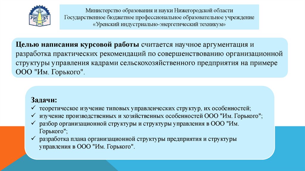 Министерство образования и науки Нижегородской области Государственноебюджетное профессиональное образовательное учреждение «Уренский