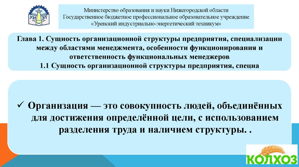 Глава 1. Сущность организационной структуры предприятия, специализации