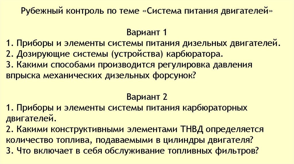 Рубежный контроль по теме «Система питания двигателей»Вариант 1
