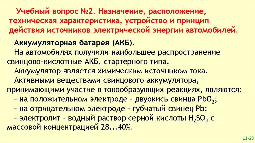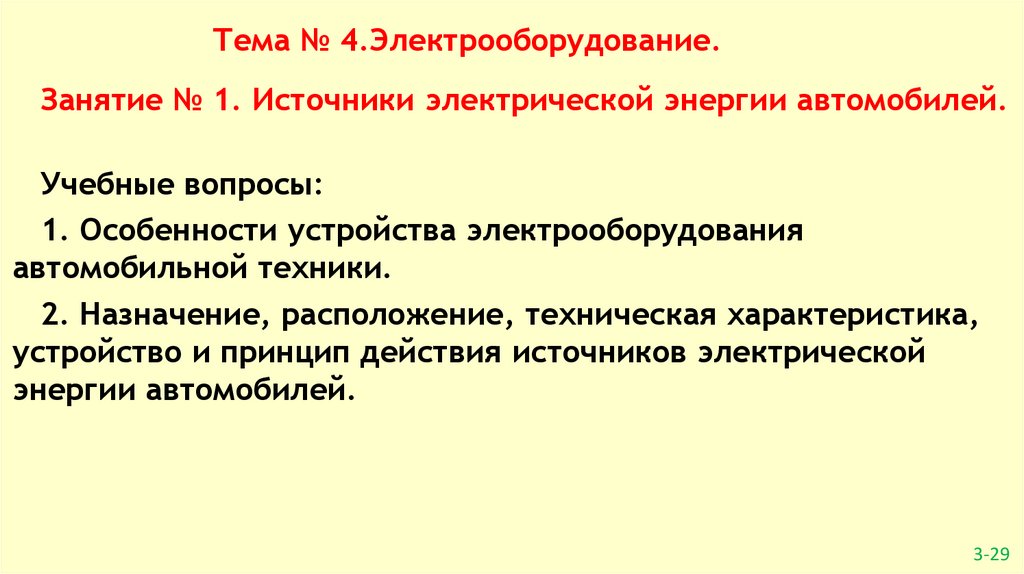 Тема № 4.Электрооборудование.Занятие № 1. Источники электрической энергии автомобилей.