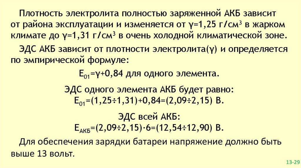 ЕАКБ=(2,09÷2,15)·6=(12,54÷12,90) В.