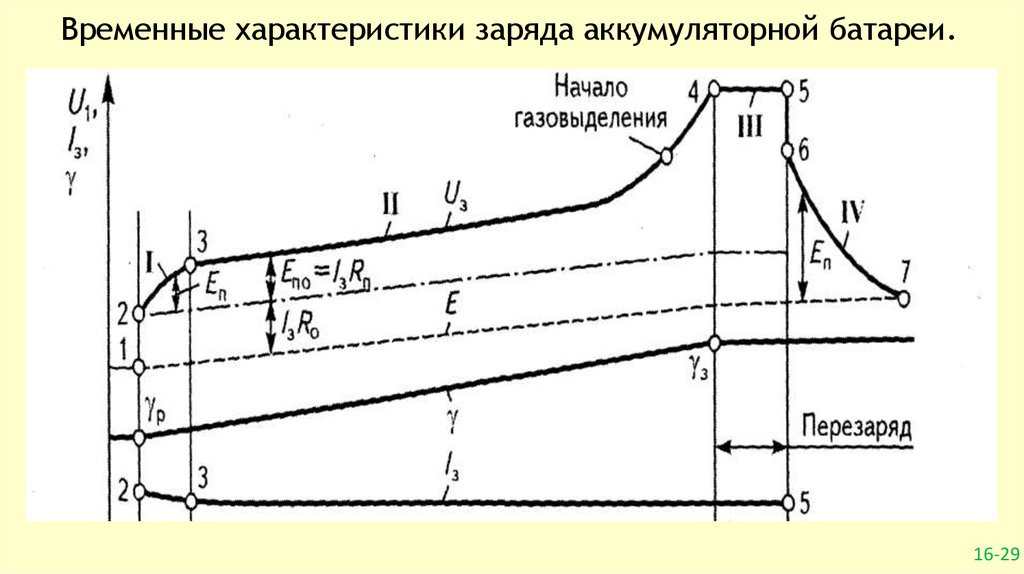Временные характеристики заряда аккумуляторной батареи.16-29