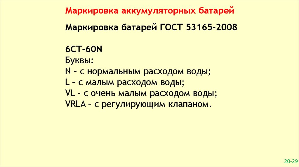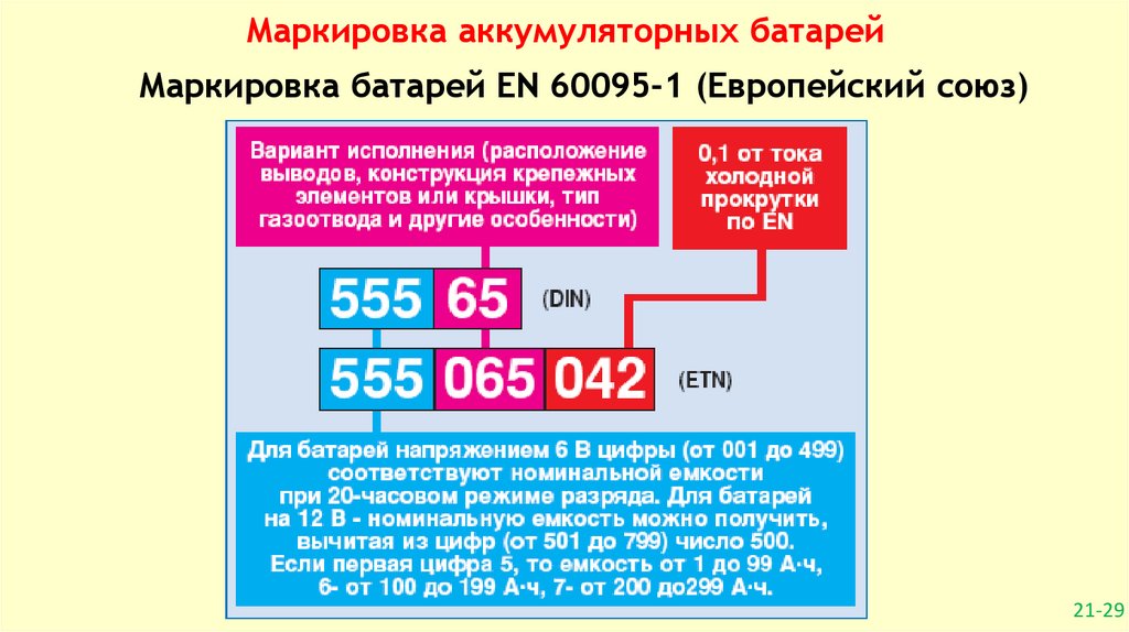 Маркировка аккумуляторных батарей.Маркировка батарей ГОСТ 959-2002.