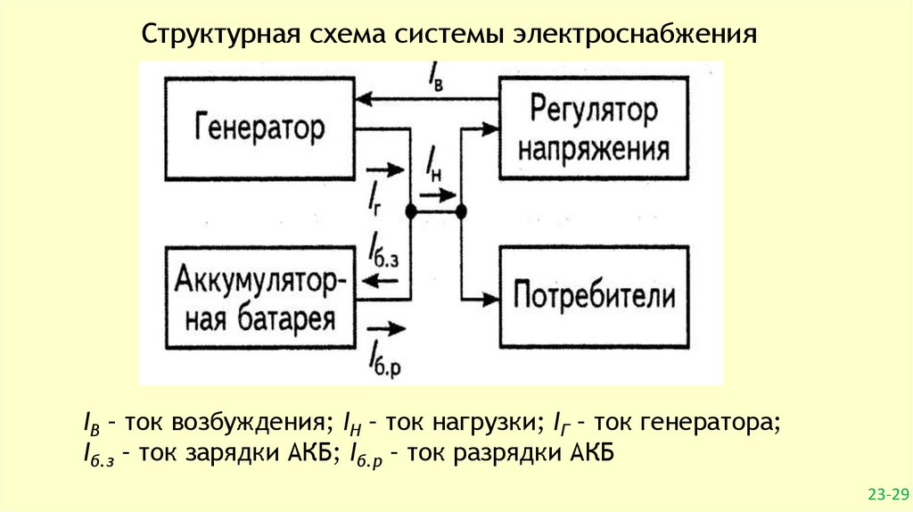 Структурная схема системы электроснабженияIВ – ток возбуждения; IН – ток нагрузки; IГ – ток генератора;
