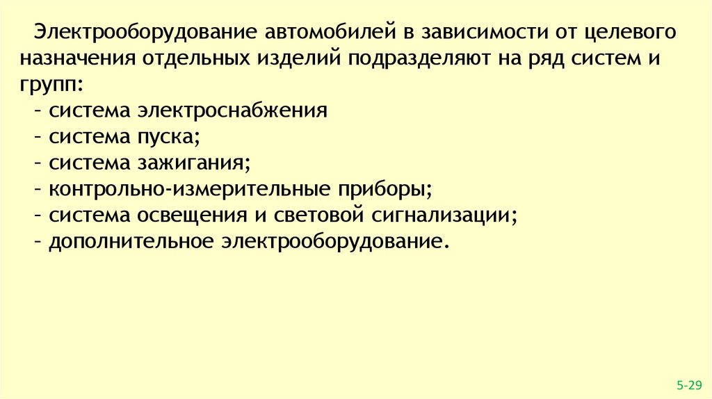 Электрооборудование автомобилей в зависимости от целевогоназначения отдельных изделий подразделяют на ряд систем и