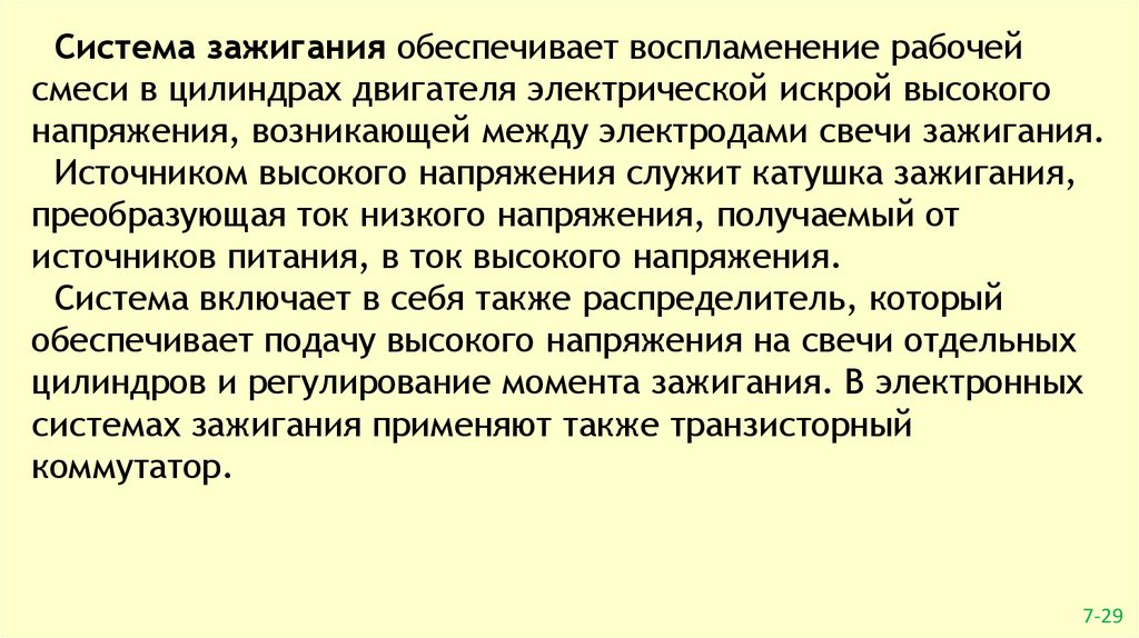 Система зажигания обеспечивает воспламенение рабочейсмеси в цилиндрах двигателя электрической искрой высокого
