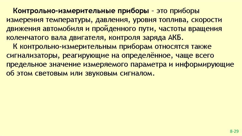 Контрольно-измерительные приборы – это приборыизмерения температуры, давления, уровня топлива, скорости