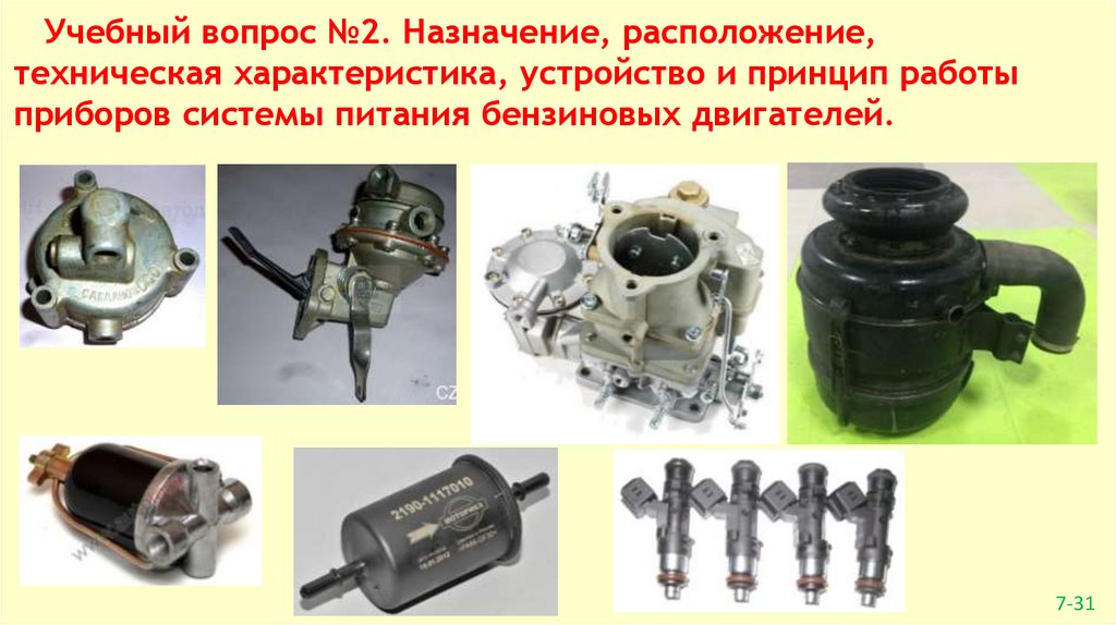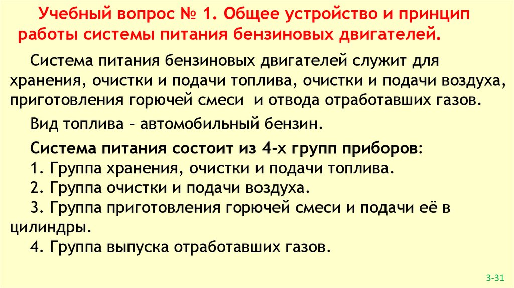 Учебный вопрос № 1. Общее устройство и принципработы системы питания бензиновых двигателей.
