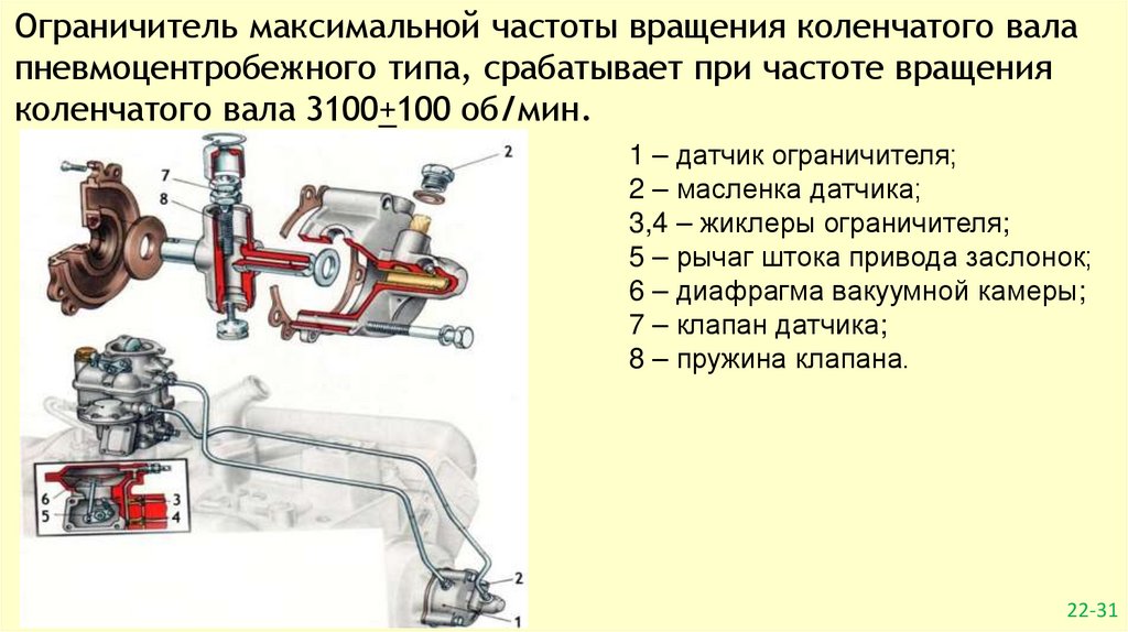 Ограничитель максимальной частоты вращения коленчатого валапневмоцентробежного типа, срабатывает при частоте вращения