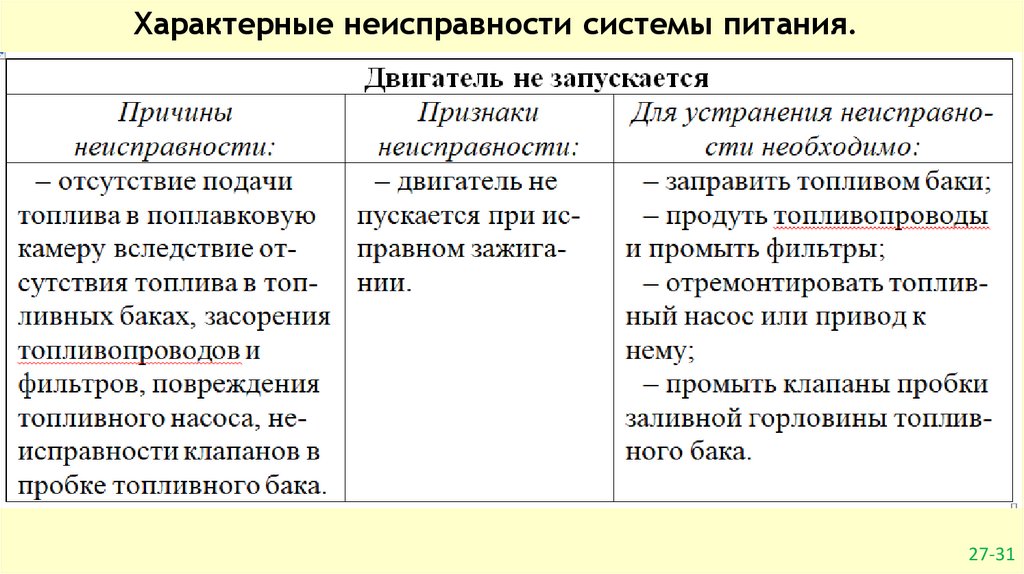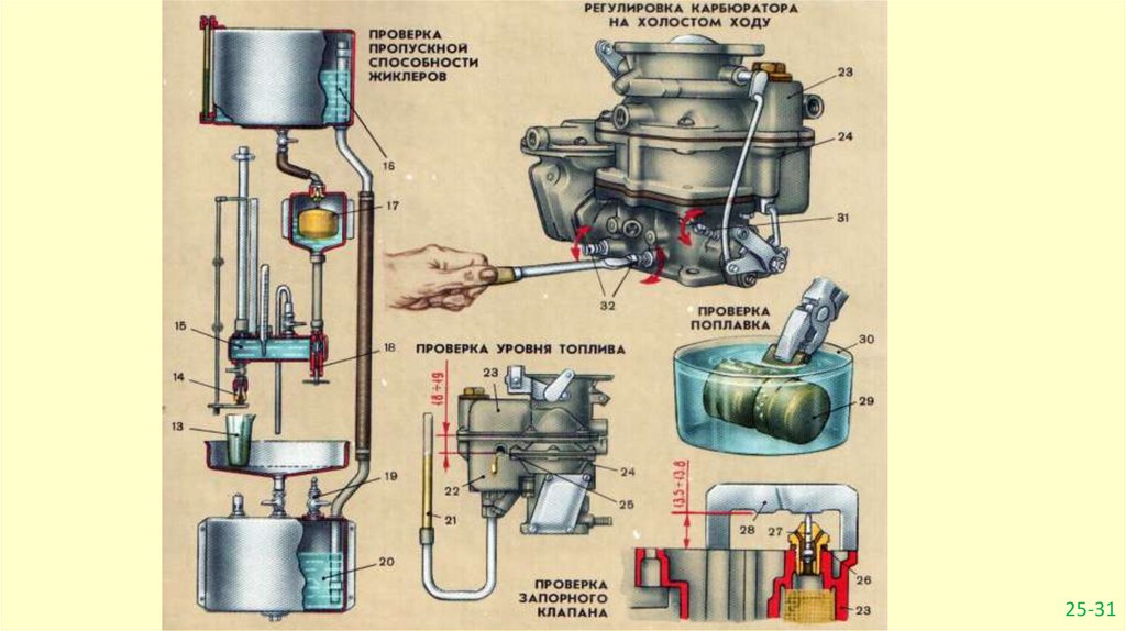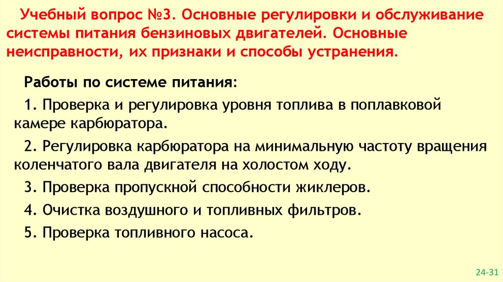 Учебный вопрос №3. Основные регулировки и обслуживаниесистемы питания бензиновых двигателей. Основные