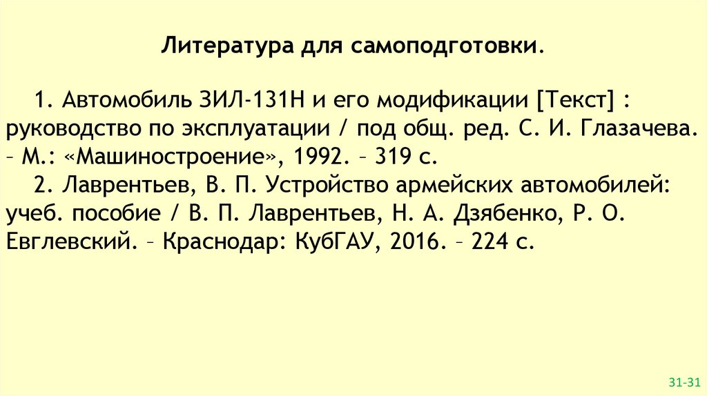 Литература для самоподготовки.1. Автомобиль ЗИЛ-131Н и его модификации [Текст] :