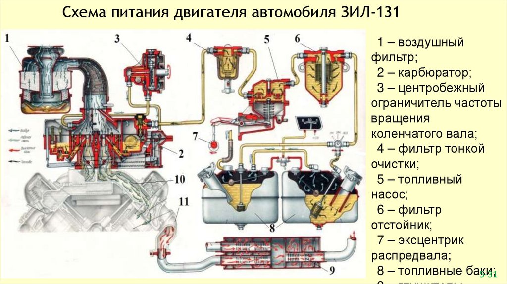 Схема питания двигателя автомобиля ЗИЛ-1311 – воздушный