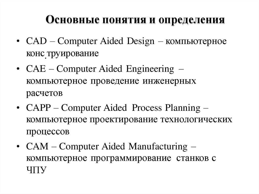 • CAD – Computer Aided Design – компьютерноеконс.труирование