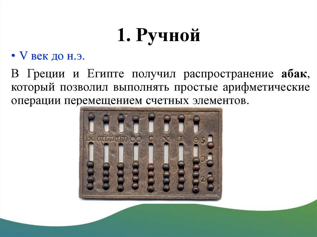 • V век до н.э.В Греции и Египте получил распространение абак,