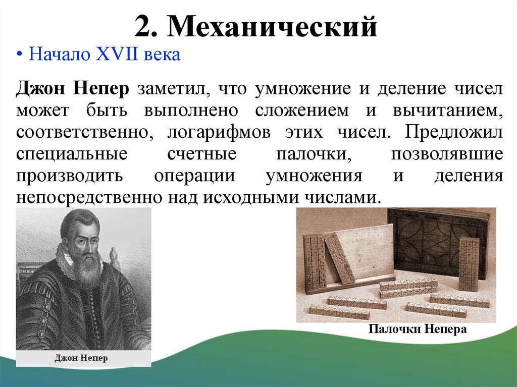 • Начало XVII векаДжон Непер заметил, что умножение и деление чисел