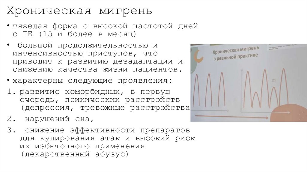 • тяжелая форма с высокой частотой днейс ГБ (15 и более в месяц)