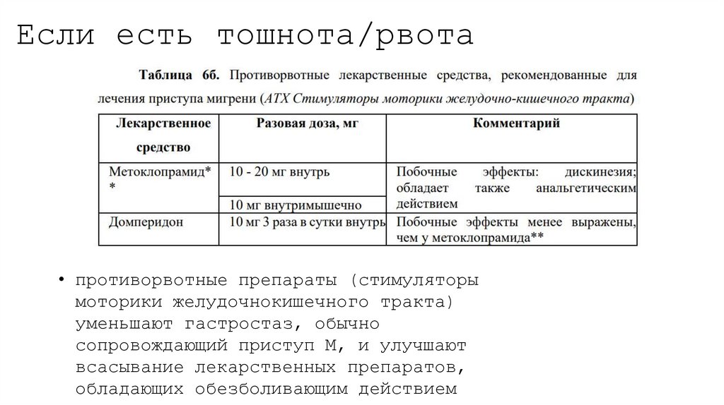 мигренозными симптомами, такими как тошнота, рвота и