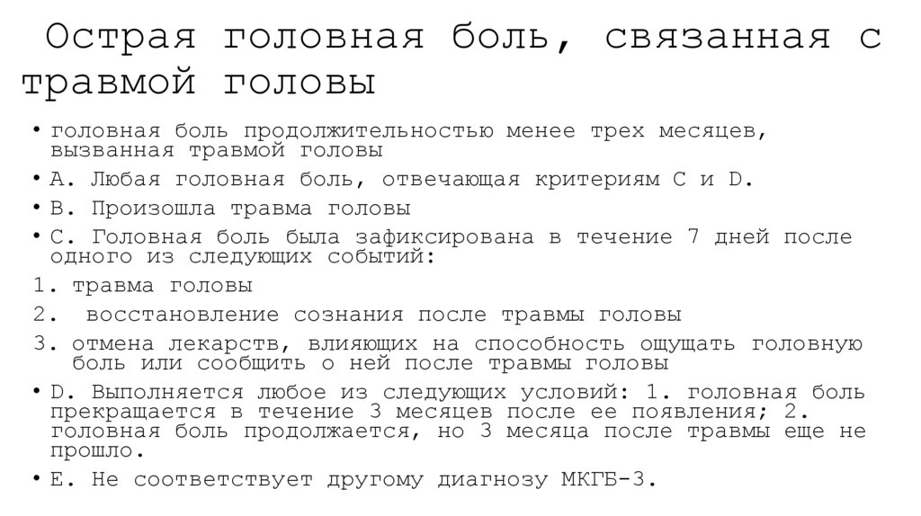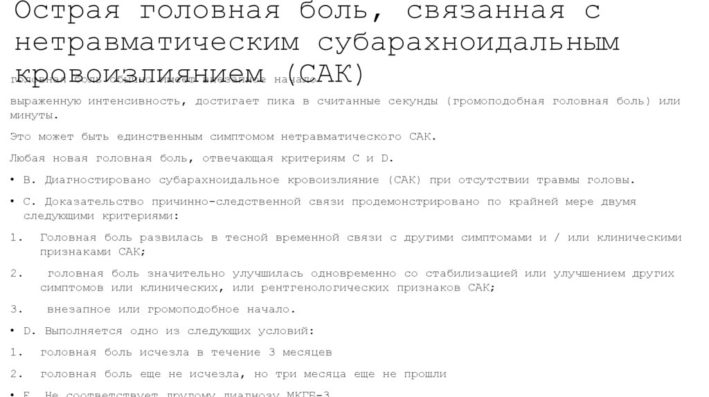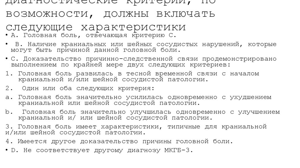 • A. Любая головная боль, отвечающая критерию С• B. Клинические, лабораторные и/или нейровизуализационные