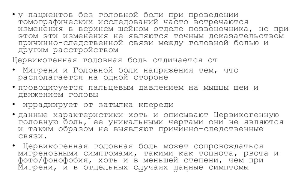 • Цервикогенная головная боль может сопровождаться