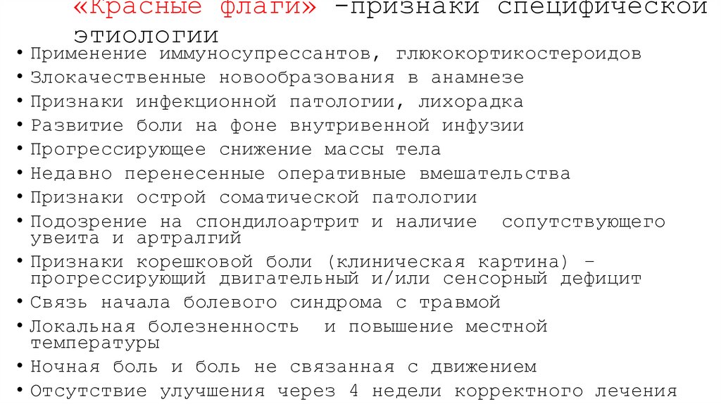 6. «Красные флаги» -признаки специфической этиологии