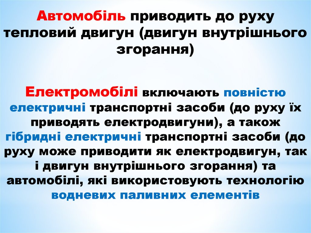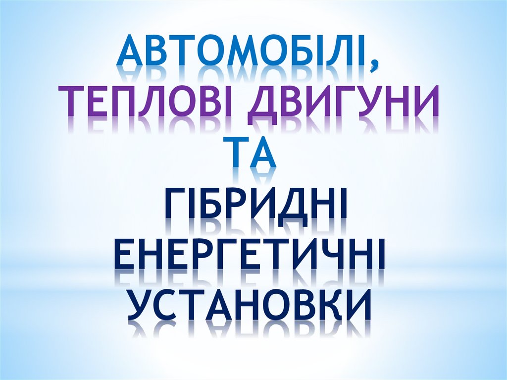 Автомобілі, теплові двигуни та гібридні енергетичні установки