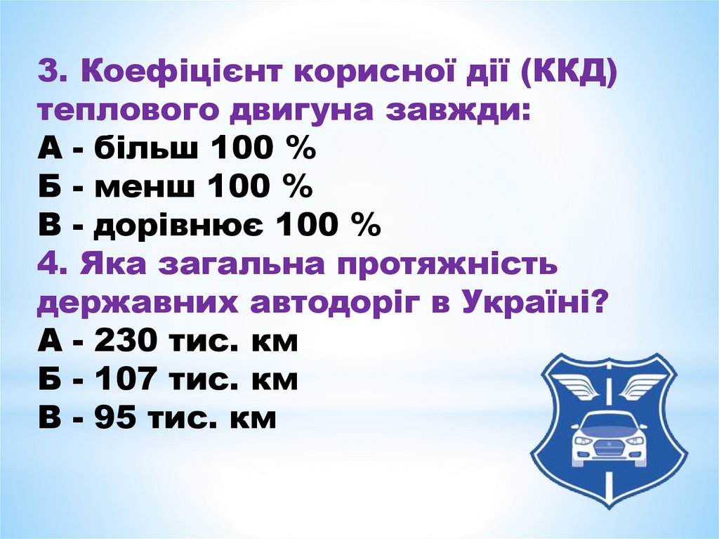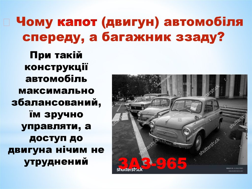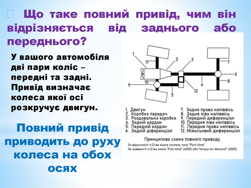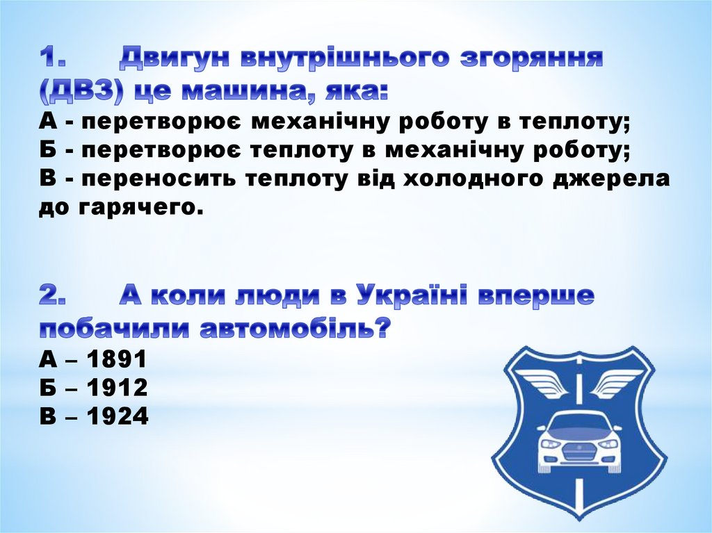Автомобіль приводить до рухутепловий двигун (двигун внутрішнього