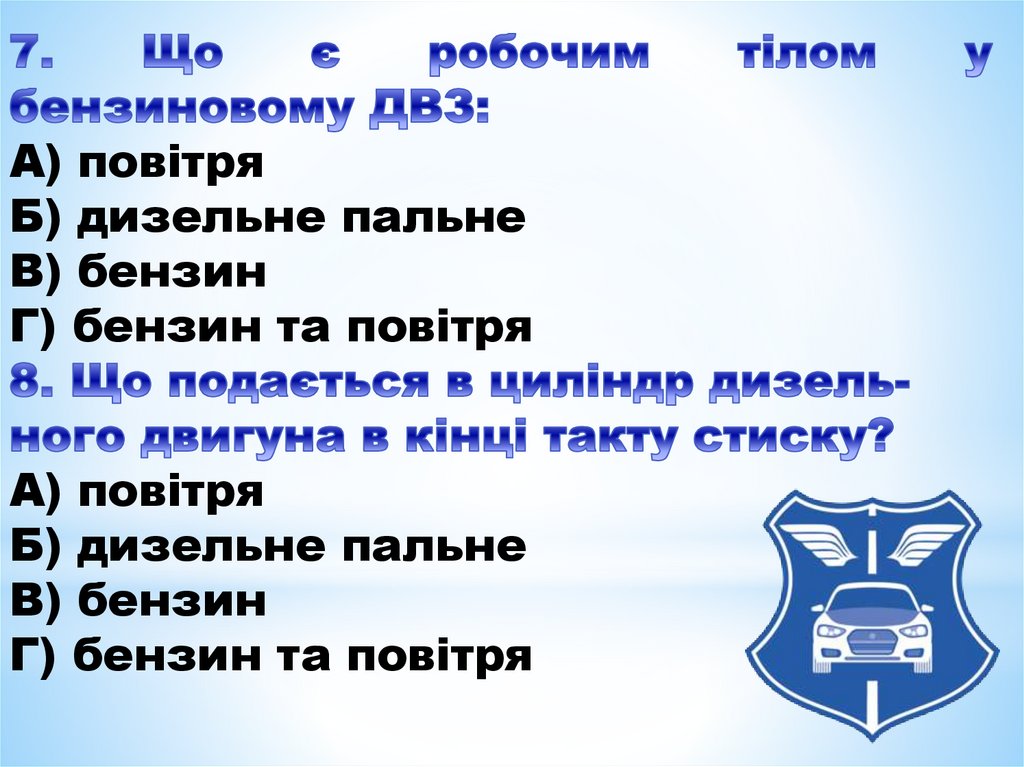 8. Двигун внутрішнього згорання є тепловим двигуном