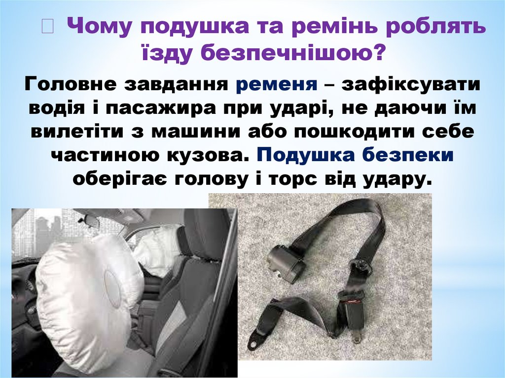 ⁕ Чому подушка та ремінь роблятьїзду безпечнішою?