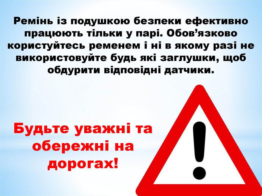 Ремінь із подушкою безпеки ефективнопрацюють тільки у парі. Обов’язково