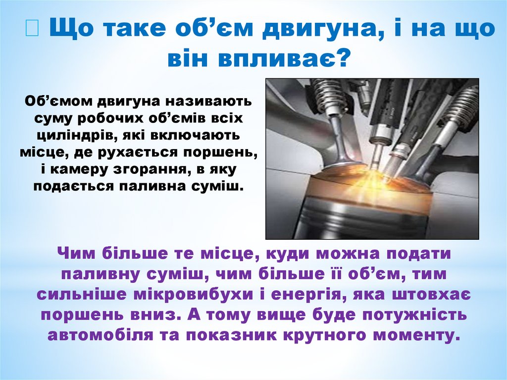 ⁕ Що таке об’єм двигуна, і на щовін впливає?