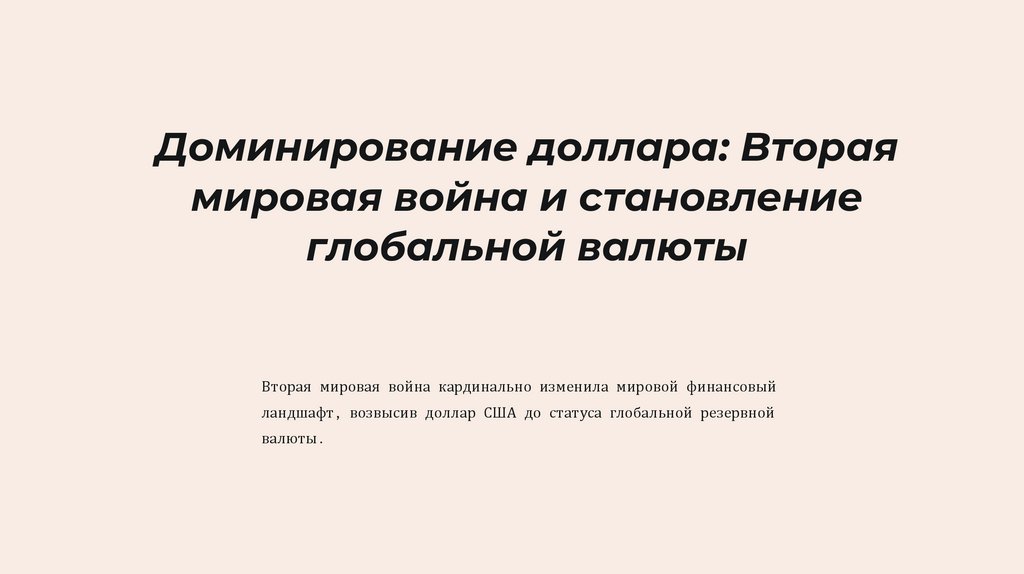 Доминирование доллара: Вторая мировая война и становление глобальной валюты