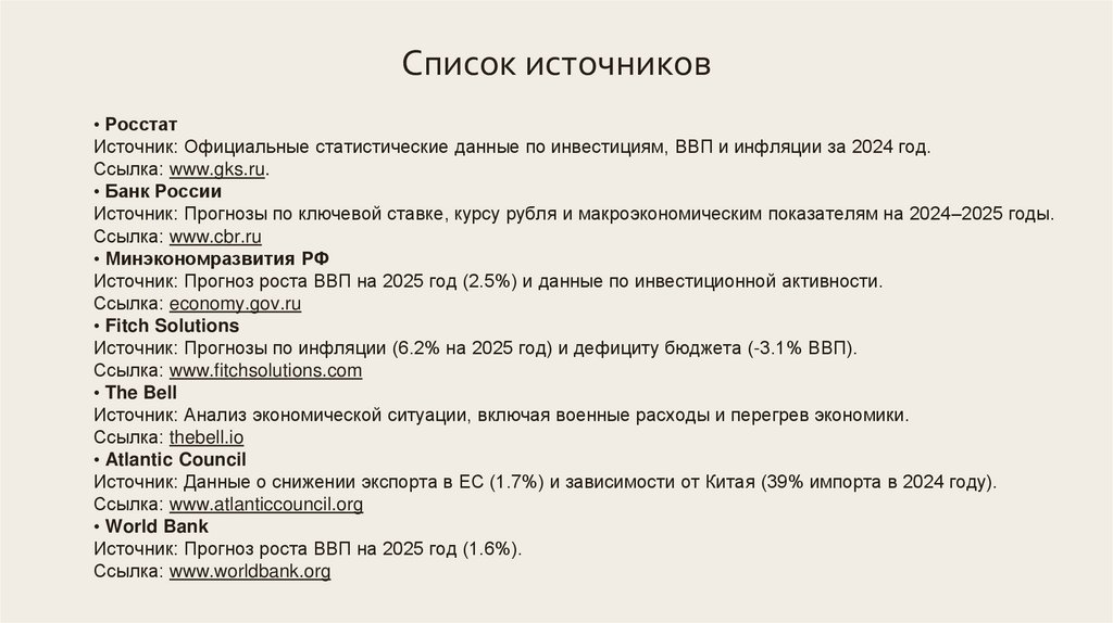 Источник: Прогноз роста ВВП на 2025 год (2.5%) и данные по инвестиционной активности.