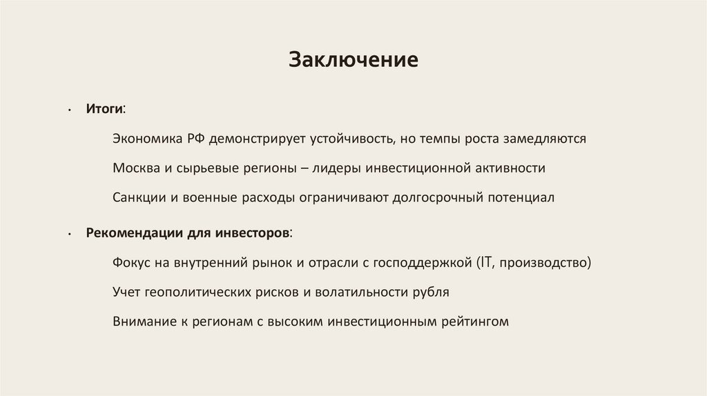 Фокус на внутренний рынок и отрасли с господдержкой (IT, производство)