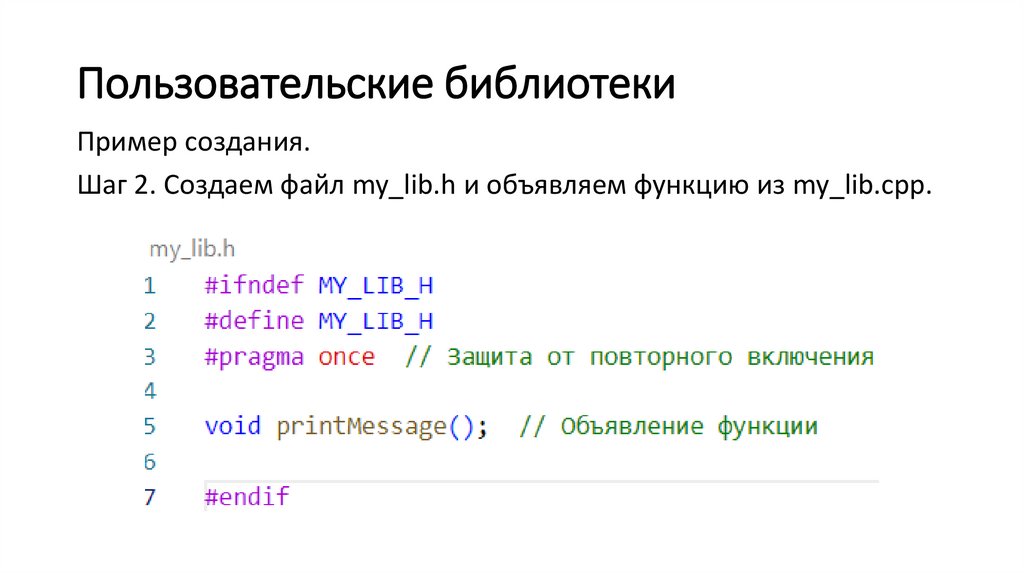 Пример создания.Шаг 2. Создаем файл my_lib.h и объявляем функцию из my_lib.cpp.