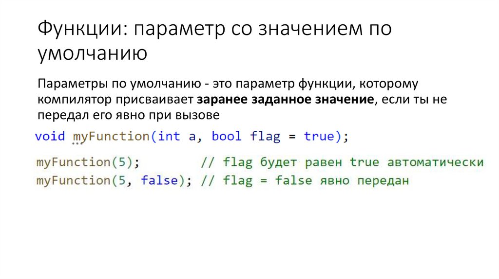 Параметры по умолчанию - это параметр функции, которомукомпилятор присваивает заранее заданное значение, если ты не