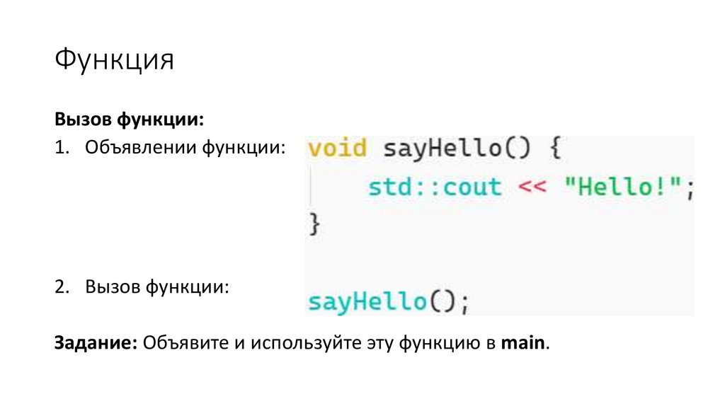 Функция — это именованный блок кода, который выполняетопределённую задачу и может быть вызван из любого места