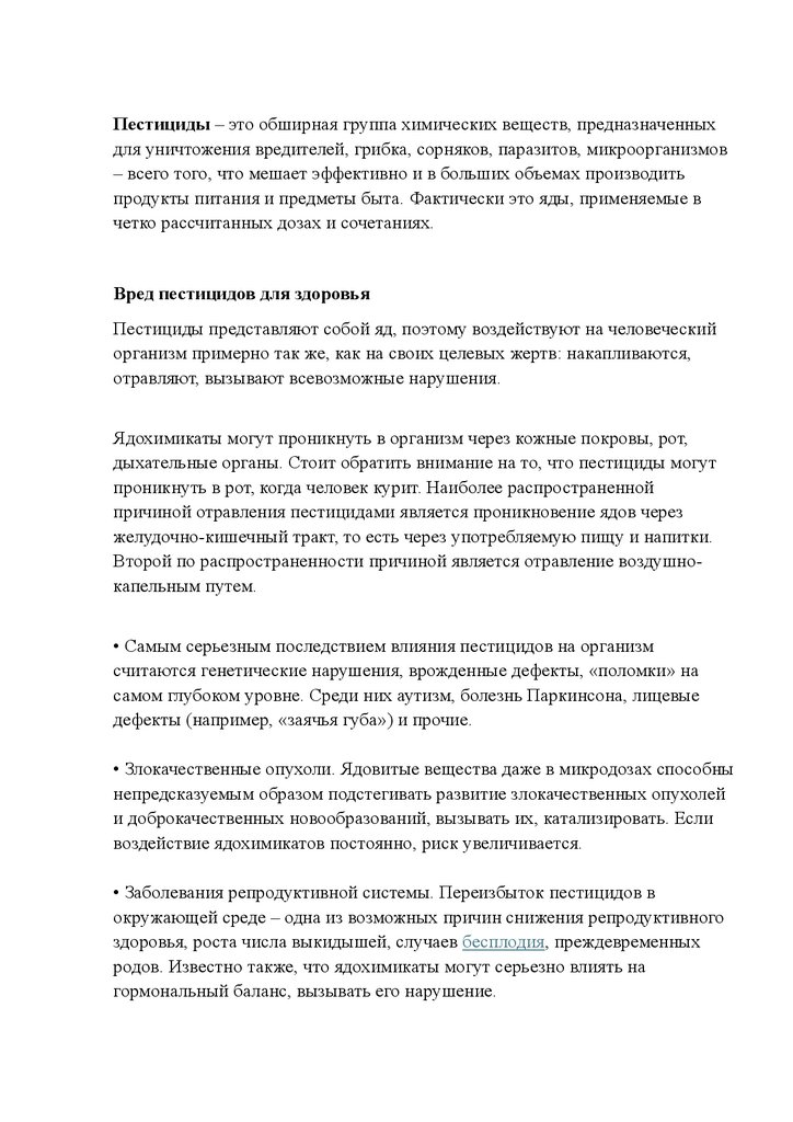 Вред пестицидов для здоровья