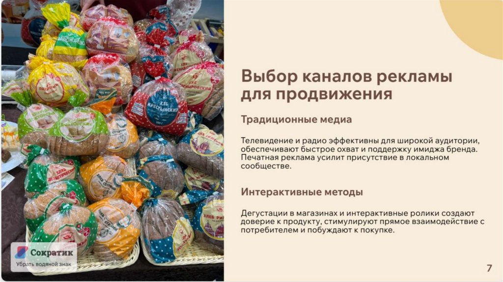рекламу, дегустации в магазинах и другие