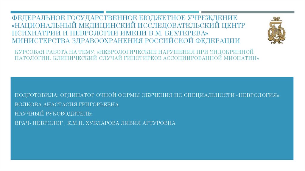 Неврологические нарушения при эндокринной патологии. Клинический случай гипотиреоз ассоциированной миопатии