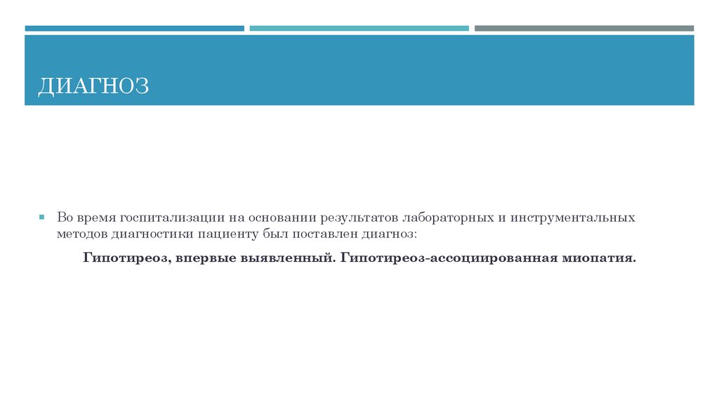 Гипотиреоз, впервые выявленный. Гипотиреоз-ассоциированная миопатия.