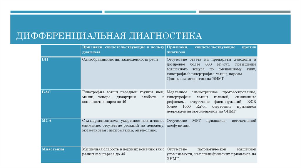 ДИФФЕРЕНЦИАЛЬНАЯ ДИАГНОСТИКАПризнаки, свидетельствующие в пользу Признаки,