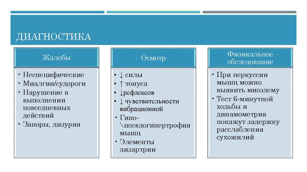 соответствующее нервно-мышечное обследование и определение уровней свободного ТТГ и Т4