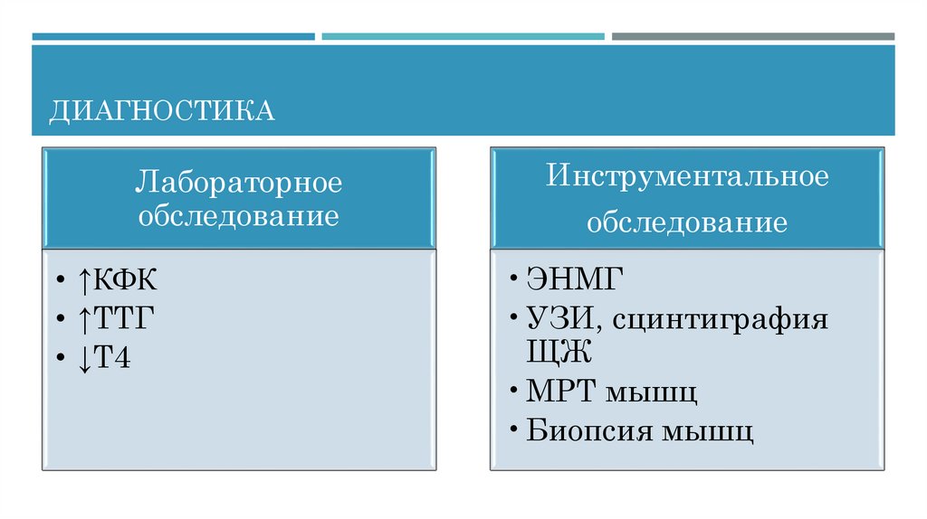 Задачи исследования – провести дифференциальную диагностику гипотиреоидной миопатии с другими