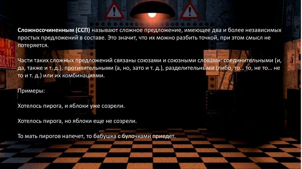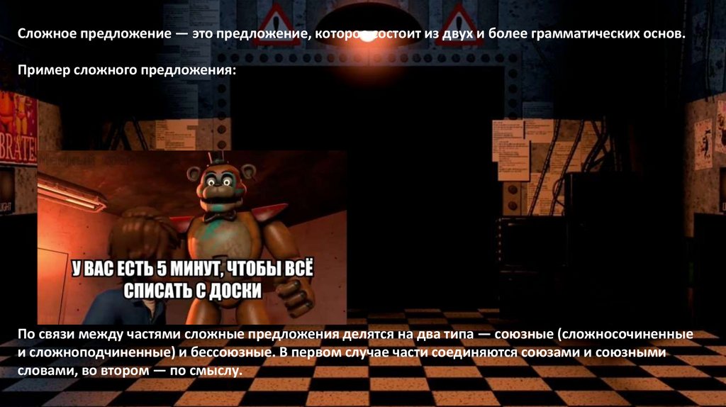 Сложное предложение — это предложение, которое состоит из двух и более грамматических основ.Пример сложного предложения: