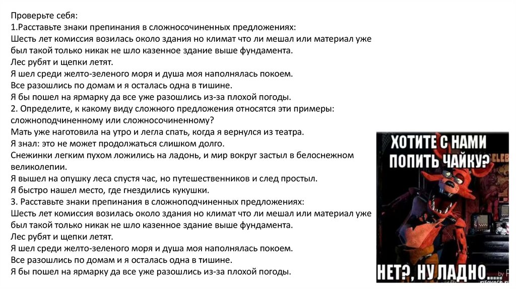 Проверьте себя:1.Расставьте знаки препинания в сложносочиненных предложениях: