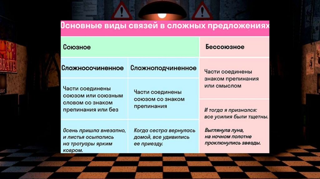 и сложноподчиненные) и бессоюзные. В первом случае части соединяются союзами и союзными